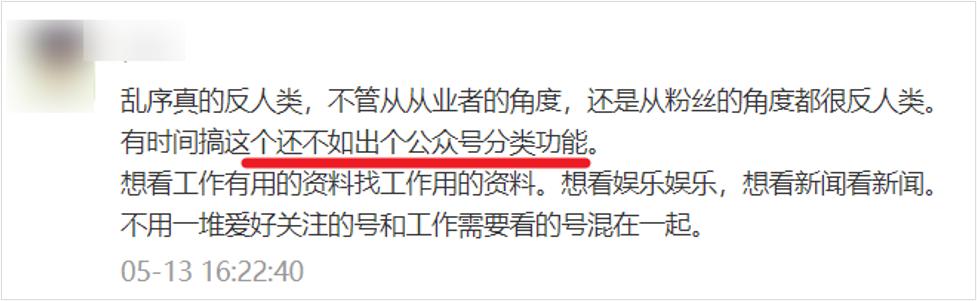 公众号开放乱序推送改版大概已经有 3 个月了,从当初刚开始灰度测试,到现在几乎所有人的订阅号推送都乱序了,吐槽的声音一直没停过: