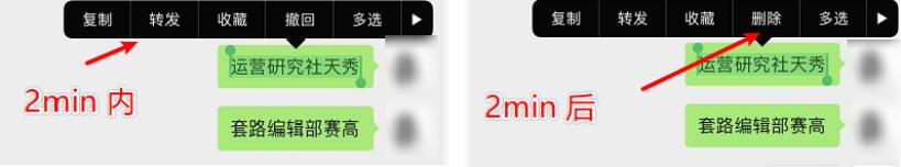 “新”功能非常简单,就是以后发消息 2 分钟内,只能撤回不能删除: