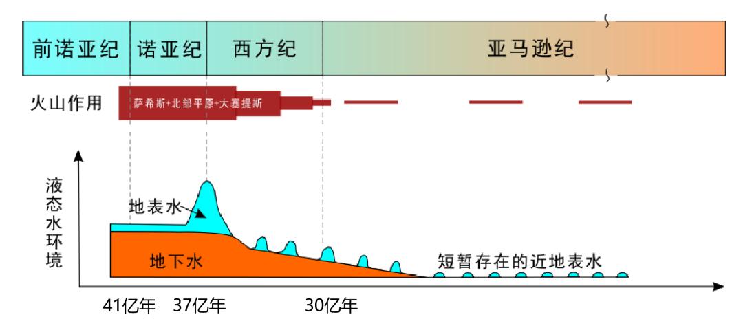 火星上的地表水活动一直到35亿年左右,地下水活动则持续到25亿年左右[4]。也就是说,在火星上环境适宜的时间,完全足够生命从无到有的演化出来。