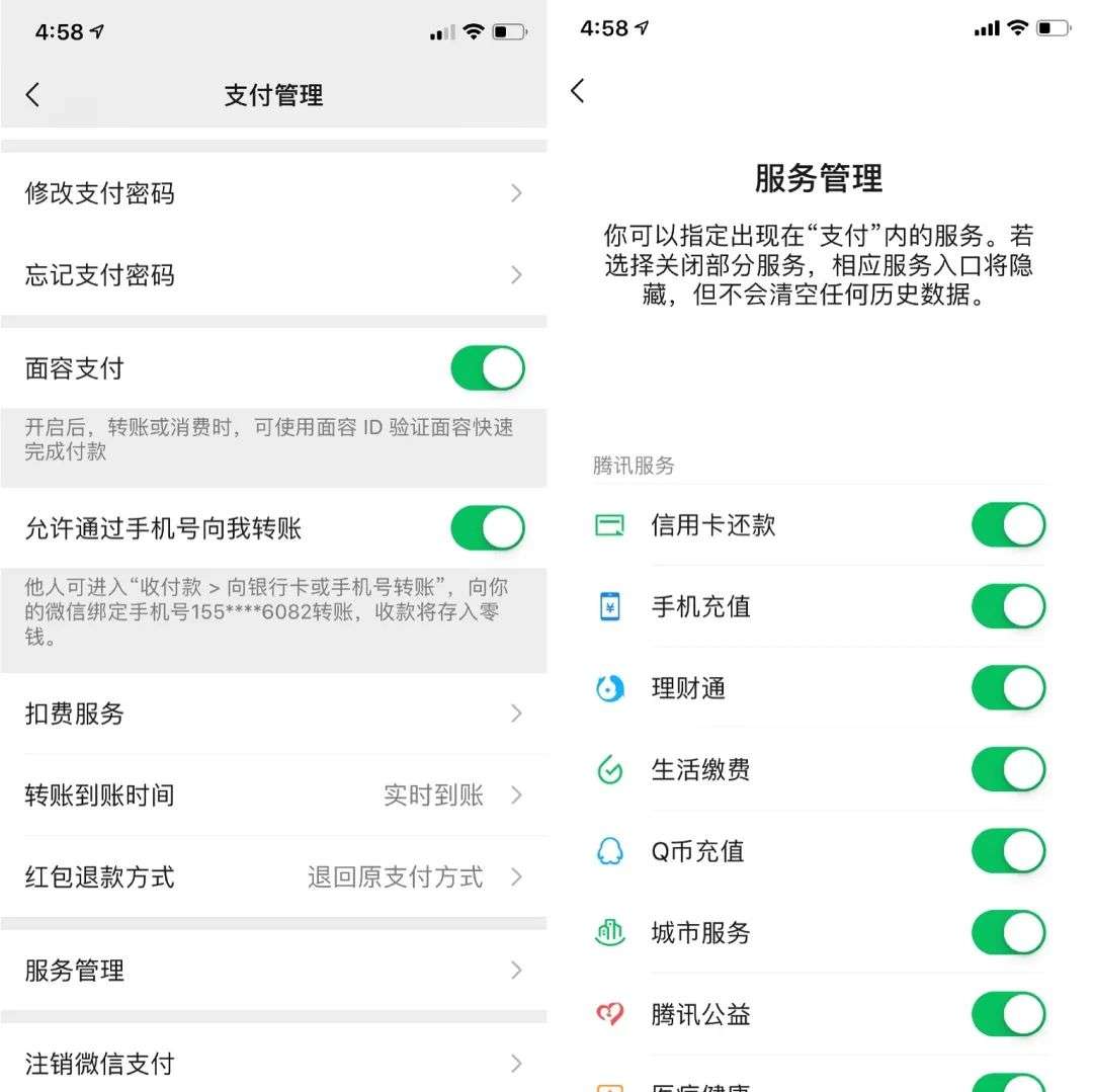 微信支付九宫格可以私人订制啦!只要在微信支付——点击右上角...,在服务管理中即可制定现在“支付”内的服务,若选择关闭部分服务,相应服务入口将隐藏,但不会清空历史数据。