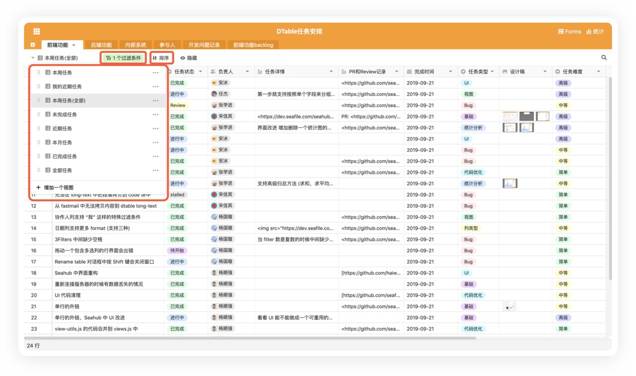 除了借鉴和参考Airtable的基本功能,SeaTable针对国内用户的使用习惯,进行了产品功能的优化,希望能降低用户的使用门槛,提升细节体验:
