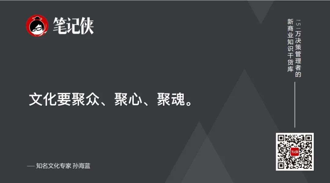 今天的分享主要分为三部分,分别是:文化聚人;文化传播;文化造势。每个部分都与企业文化如何凝聚人心密切相关。