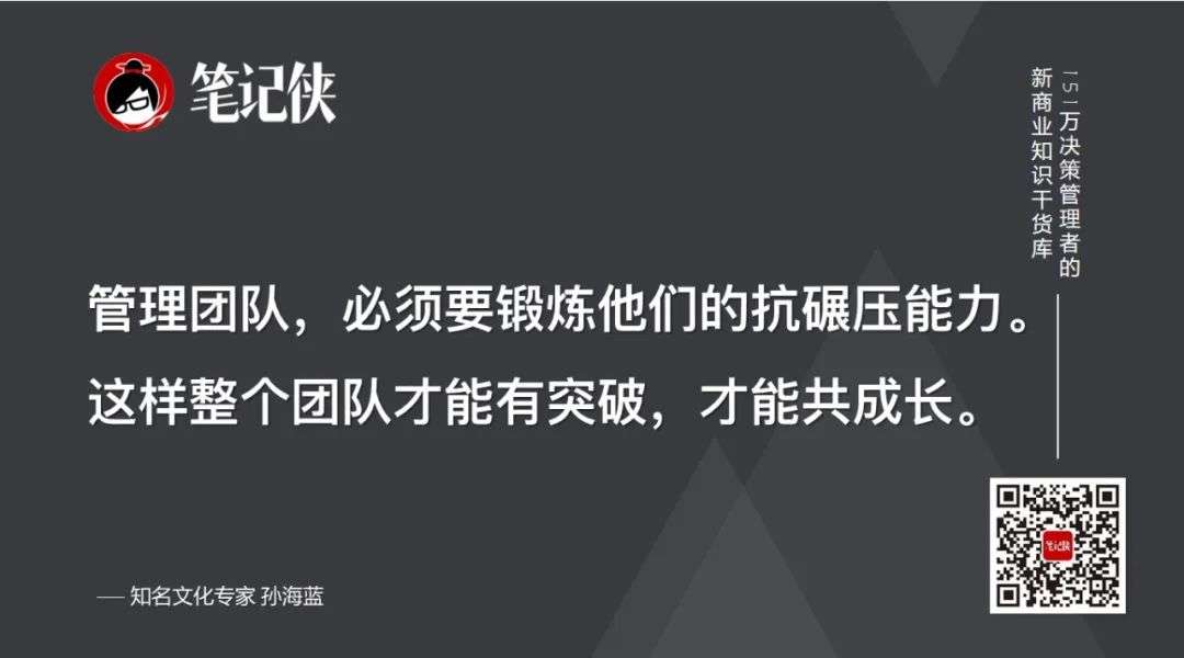 管理团队,必须要锻炼他们的抗碾压能力。这样整个团队才能有突破,才能共成长。