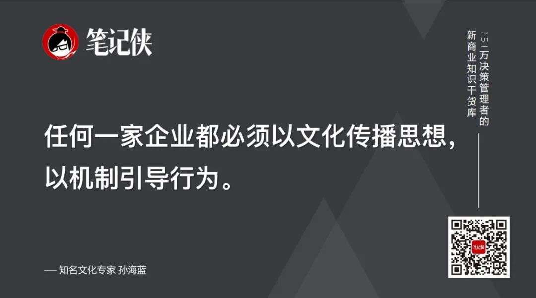 所以,任何一家企业都必须以文化传播思想,以机制引导行为。