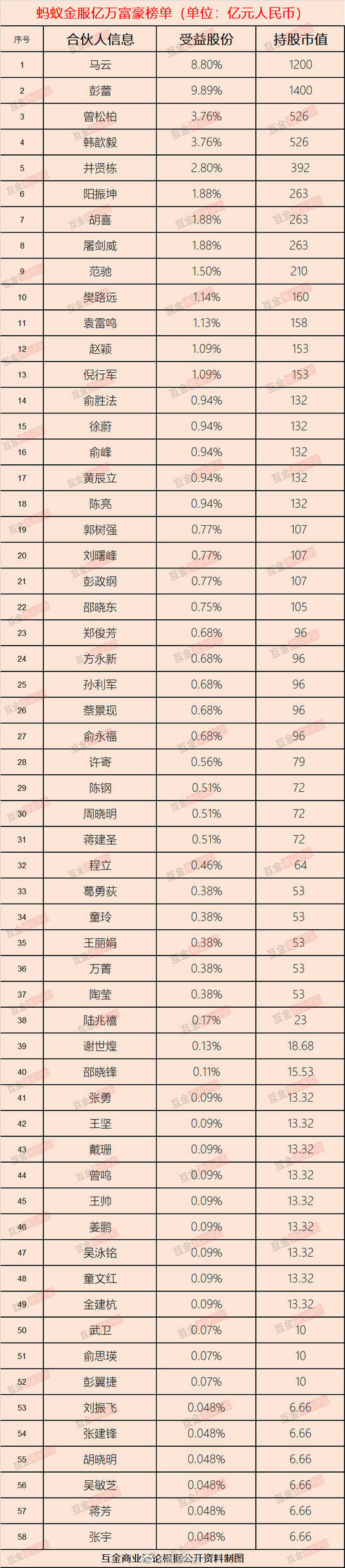 科技神回复 | 蚂蚁金服58名亿万富豪全名单,没找到我的名字好好搬砖去了