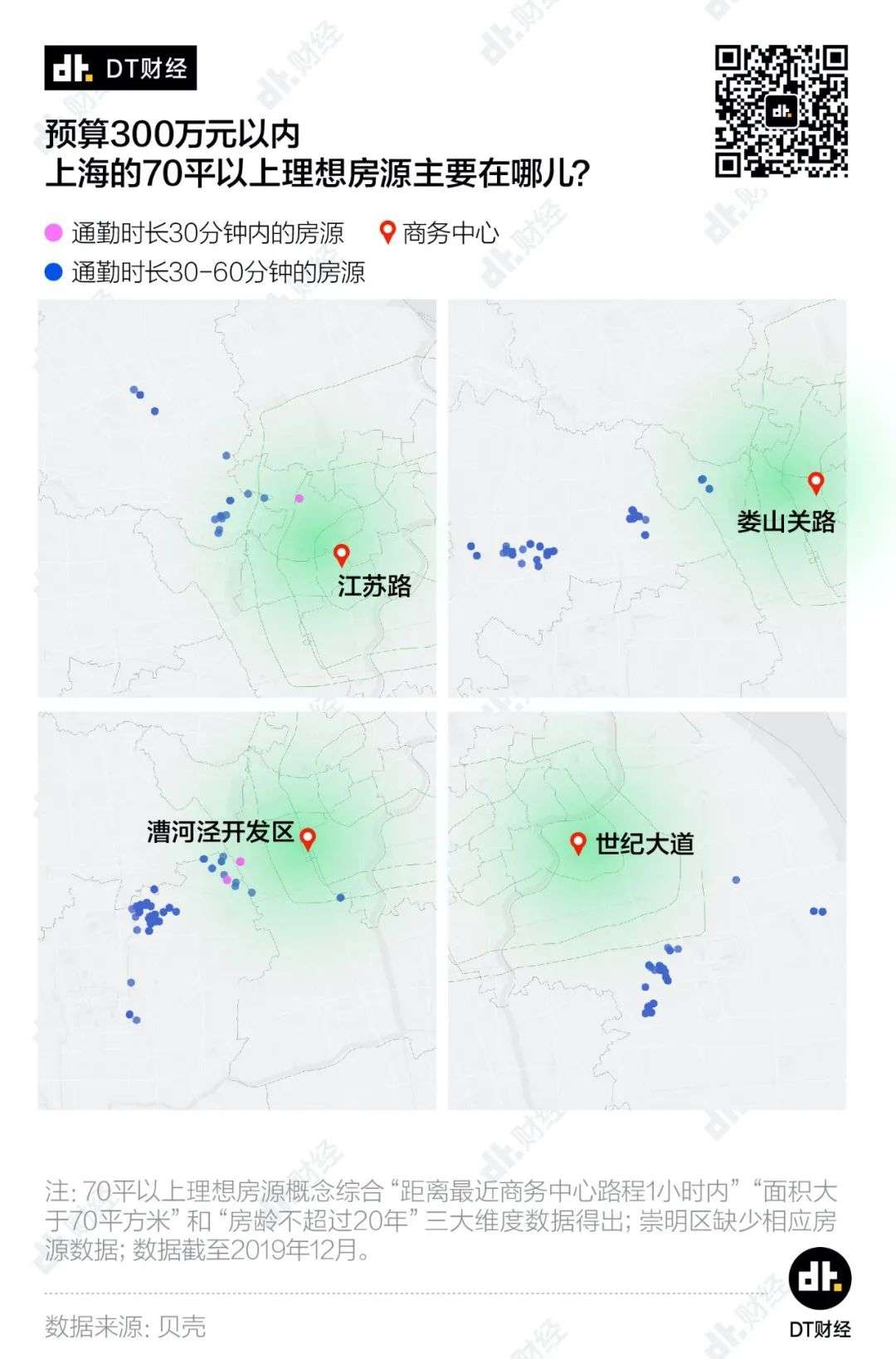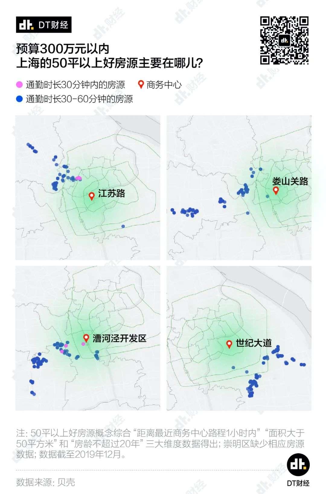 我们询问了下,小马现在正好是在漕河泾上班,想要把通勤时间压缩到30分钟内,那么可选择的300万房源稍微有点少;如果能接受1小时的通勤——这在大城市也算是平均水平——那么小马的选择将会变得非常丰富。