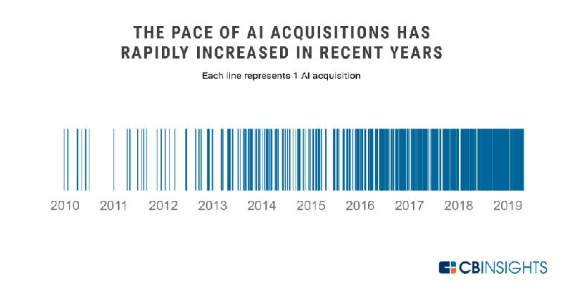 ▲2010-2019年AI收购步伐持续加快(来源:CB Insights)