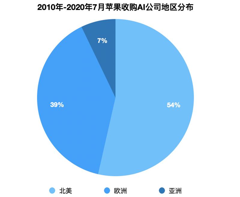 ▲2010-2020年7月苹果收购AI公司地区分布