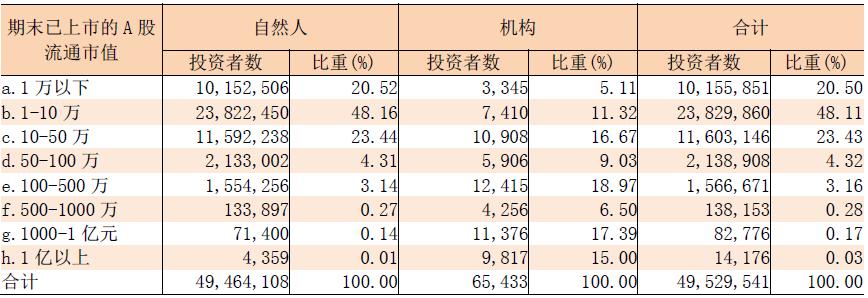 但是看了表就知道,即便在A股市值最高的牛市高光时刻,50万以下的账户就占了所有个人账户的92.12%,也就是在你投入50万就超越了92%的人,已经可以傲视他人了。