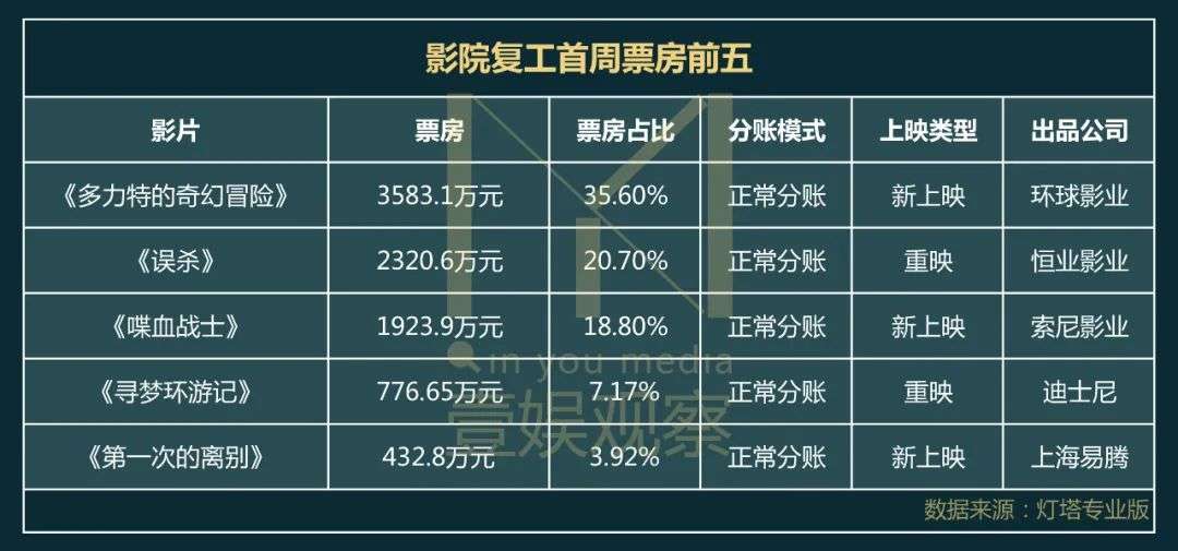 以上就是全国影院复工首周的数据情况,可需要知道的是,隐藏在亿元票房下的是还有超过50%影院在首周未能实现复工。即使全国影院复工情绪高涨,但在几十万的初期启动资金和对初期复工市场环境的不明确,让很多私营影院顶着重压缓慢复工,这也预示着影院振兴之路必将负重前行。