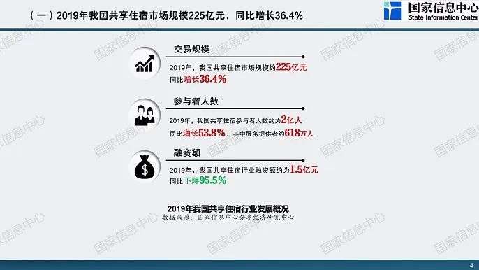 疫情之前,民宿行业正处于上行态势。国家信息中心分享经济研究中心发布《中国共享住宿发展报告2020》报告显示,2019年,我国共享住宿行业的交易规模约为225亿元,同比增长36.4%。共享住宿行业的参与者人数约为2亿人,同比增长53.8%。其中,服务提供者人数约618万人,房客人数达到1.9亿人。