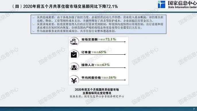 但同时报告也指出,受突发疫情冲击,2020年前五个月,我国共享住宿市场交易额同比下降72.1%。