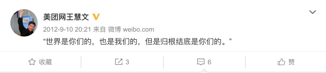 大多数人看到的王慧文,可能也只是他个人的 B 面。也许,再来一次外卖大战那样的战争,才能彻底激活曾经的王慧文。