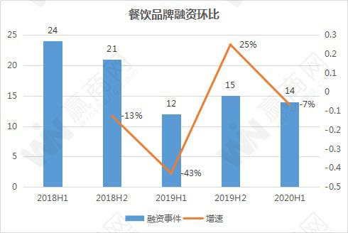 不过,疫情冲击并不妨碍餐饮是最受资本欢迎的业态。上半年餐饮融资14起(占比28%),略高于去年同期的12起。
