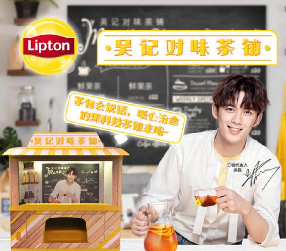 2018年,流量明星吴磊成为立顿的代言人,同时推出了针对年轻人的跨界产品,包括与塔卡沙推出的服饰周边、与精酿啤酒鹅岛卖茶味啤酒、天猫双十一的“脱单礼盒”等。