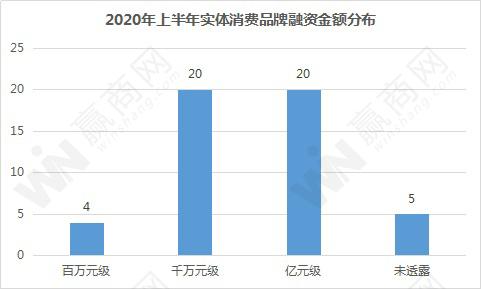 整体来看,上半年实体消费品牌融资事件总计49起,同比2019年上半年的54起,并无很大差距。在疫情冲击的大背景下,不得不说,资本市场活跃度还不错。