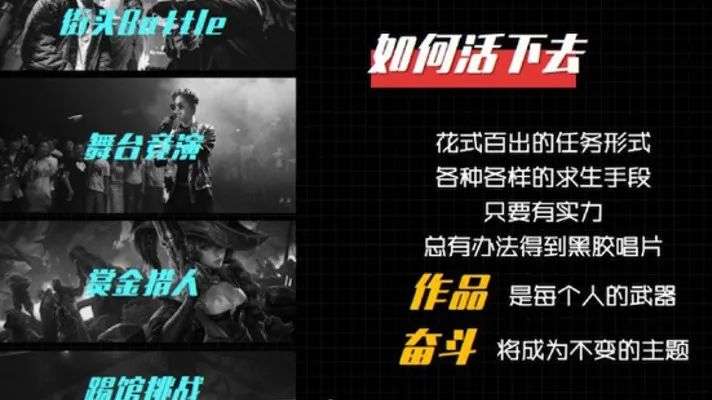 从PPT的介绍能拆解出的游戏规则是,选手需要靠自己的rap作品赢得“黑胶唱片”,才能在这个“游戏”里生存下来,仅披露的环节就有“街头battle”、“舞台竞演”、“赏金猎人”、“踢馆挑战”。在节目的舞美照中还能看出,节目里还设置了多个具有未来感的封闭“城镇”,或许也是为不用风格的rapper提供的不同赛道。