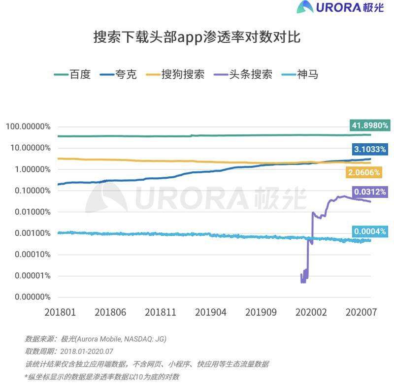 在PC端,搜狗与百度平分秋色,都达到了40%以上的市场占有率。根据极光大数据的报告,渗透率仅次于百度的搜狗搜索,在今年上半年被阿里旗下的夸克浏览器反超,头条则超速跑到了第四位。
