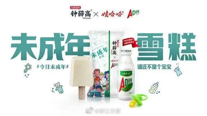 今年3月26日,娃哈哈联名钟薛高,推出联名款“未成年雪糕”。