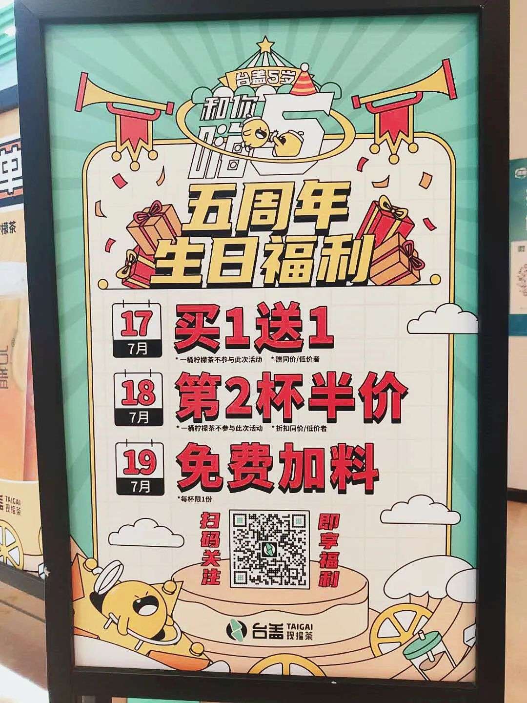 但事实是开业、周年庆、节假日、上新,大量奶茶店在各种情景下对“买一送一”这样的促销活动仍难割舍。