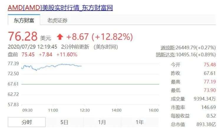 受财报利好影响和老对手英特尔的“流年不利”,AMD 28日美股收盘后股价大涨超10%,而29日盘前股价涨幅亦超10%。