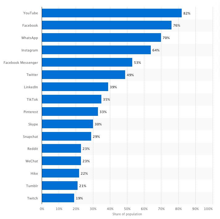 根据Statista 2019年第三季度发布的数据,在印度社交媒体领域排名前十(用户比例)的仅有TikTok隶属中国公司,其他均为美国科技巨头掌控。