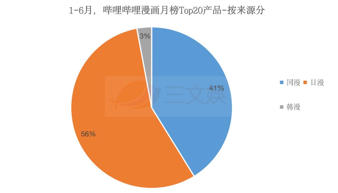 2020年1-6月的六个月票榜,Top20榜单共有34部作品上榜,其中日漫作品19部、国漫作品14部、韩漫1部。