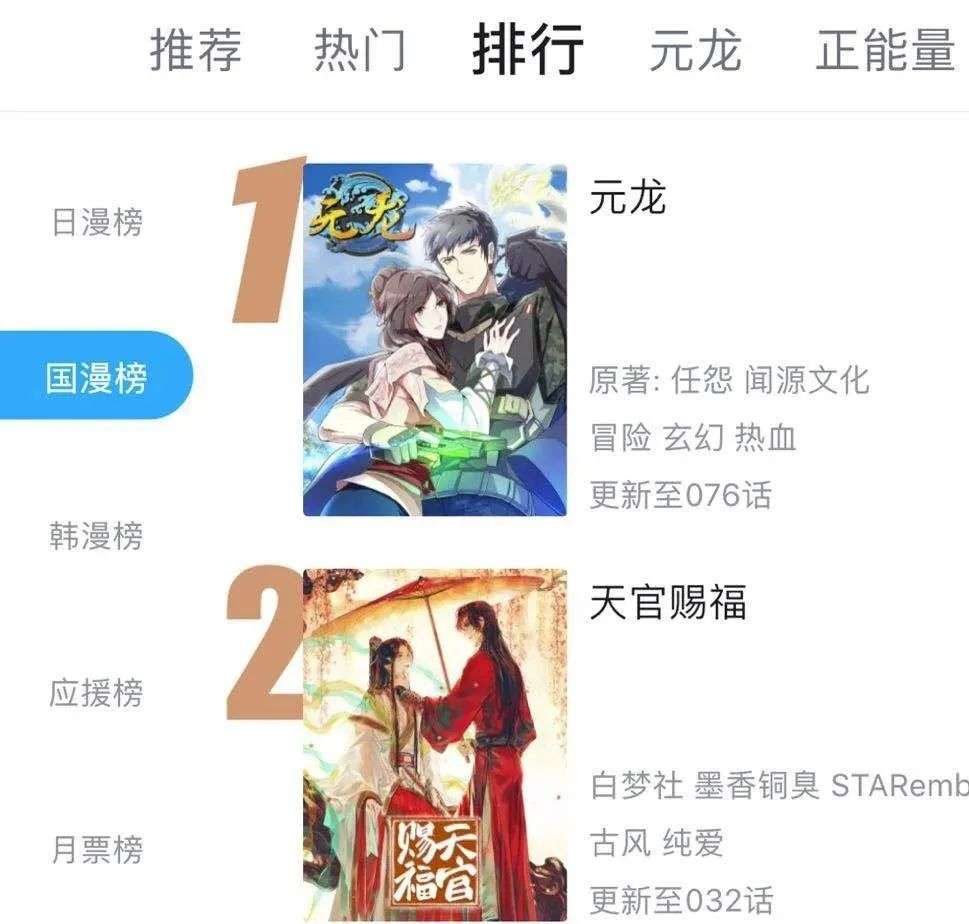 腾讯动漫国产漫画月票榜观察