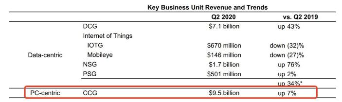 英特尔2019 Q2财报,数据中心营收50亿美元,同比下降10%,一定程度上导致了2020 Q2的高增长