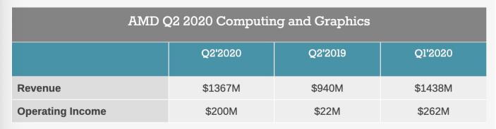 分业务看,AMD的营收重点仍然是偏个人业务的计算和图形部门,本季度整体营收13.7亿美元,相比去年同期有45%的飞跃式增长,但环比下降5%。