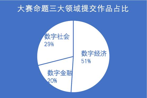 目前,大赛三个命题领域提交作品占比已拉开明显差距。“数字经济”领域吸引了更多参赛者的目光,占比一半。其中,“数字社会”与“数字金融”两大领域则不相上下。
