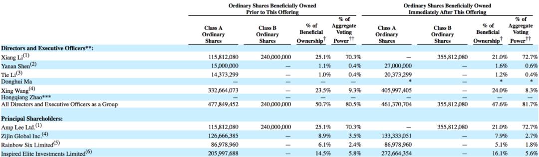 值得注意的是,IPO后,理想汽车创始人、董事长兼首席执行官李想将继续拥有21.0%的股份,而王兴及美团的持股比例将超过李想,从IPO前的23.5%增至24.0%,王兴个人也是理想汽车的董事;投票权方面,李想将享有72.7%的投票权,而王兴及美团的投票权则为8.3%。