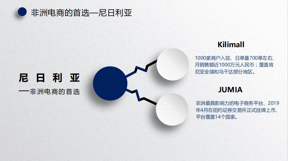 尼日利亚最大的电商平台Jumia创立于2012年,并于去年在纳斯达克上市,有“非洲版阿里巴巴”之称,有自己的支付和物流系统。据刘建华介绍,Jumia平台每日的浏览量在100万左右。由原华为成员打造的Kilimall主打东非市场,支持跨境购买,并且注重本地运营,但目前的规模和Jumia相比并不在一个量级。