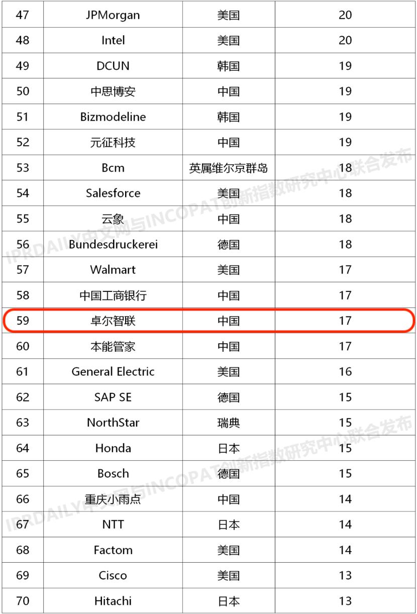 近日,知识产权产业媒体IPRdaily与incoPat创新指数研究中心联合发布了“2020上半年全球企业区块链发明专利排行榜(TOP100)”。卓尔智联集团以17件专利数位列第59位,与美国沃尔玛和中国工商银行排名相当。卓尔智联也是武汉地区唯一进入该专利百强榜的企业。