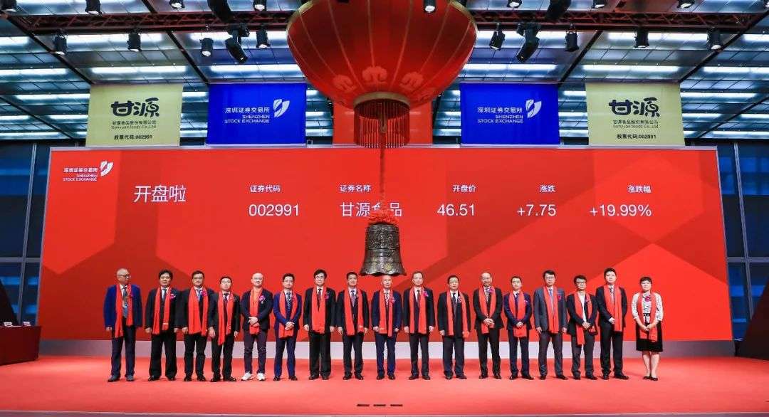 投资界(ID:pedaily2012)消息,7月31日,甘源食品股份有限公司登陆深交所中小板敲钟上市,发行价为38.76元/股,开盘价46.51元/股,后一度涨停最高价55元/股,总市值51亿元。