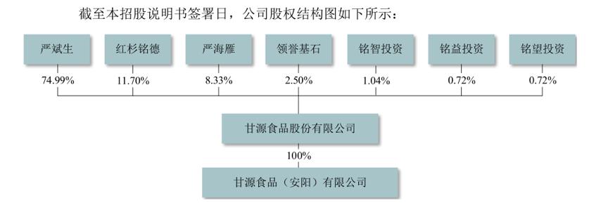 为了给家乡人带来更多致富机会,2006年严斌生毅然回到江西萍乡。最初,其兄弟严剑与严景剑以货币方式出资设立萍乡市甘源食品有限公司;2011年,甘源有限股东由“严剑、严景剑”变更为“严斌生、严海雁”,严斌生成为实控人。