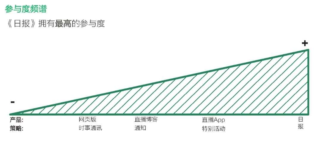 为了了解数字世界的习惯,《卫报》绘制了他们的参与范围。从网络到印刷产品,该频谱显示了读者在《卫报》庞大的数字资产组合中参与了多深,以及团队可以采用哪些策略来吸引每种产品的用户。有趣的是,在这个频谱中,印刷版本是参与度最高的产品。