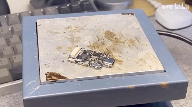 然后,给PCB板刷上焊锡膏,贴好芯片、电阻、电容等元器件,放到恒温加热台上煎至两面金黄,完成回流焊。