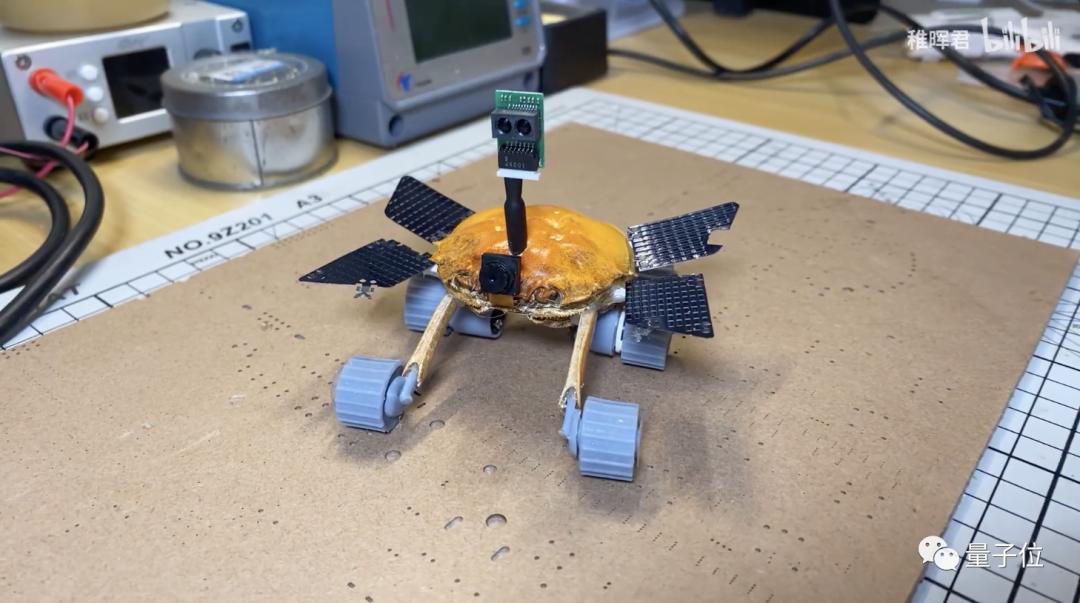 总之,一套令人眼花缭乱的操作之下,螃蟹君完成「虚弱肉身,机械飞升」,成功进化成了一台迷你火星车!