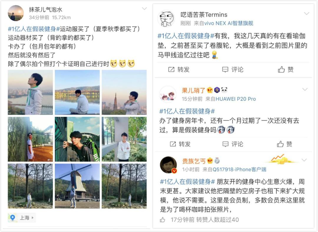在这群放弃健身的人当中,有的直言万事俱备只欠东风,然而健身大业止于拍照;有的历数自己在健身事业上有去无回的投资;还有的勇敢po出了自己荒废已久的健身课程,一脸大义凛然……至少,为国家贡献GDP的感觉,是光荣的。