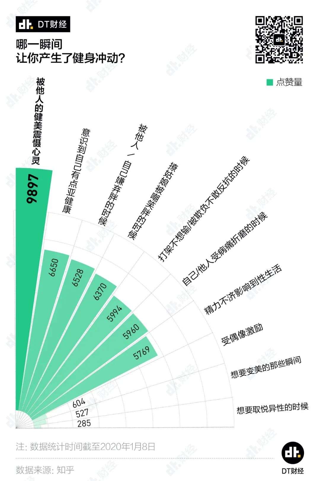 在知乎问题“哪一瞬间让你产生了健身冲动”下,有超过200个产生健身想法的瞬间。简单归纳总结之后,我们得到了现代人健身的最初动力。