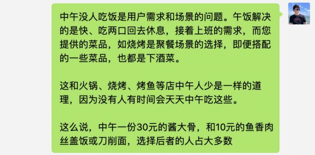 思考之后,我初步总结的主要原因在于消费频次,即中午来消费的少,这背后的原因在于消费场景,对场景感兴趣的可以看这篇:《如何用「场景思维」哄女友高兴?男女必备!百试百灵!》