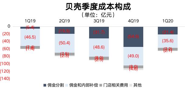 2019年,贝壳对内佣金和提成同比增长了23.3%至194.4亿元,主要是平台通过链家品牌完成的交易量同比增长了13.6%。