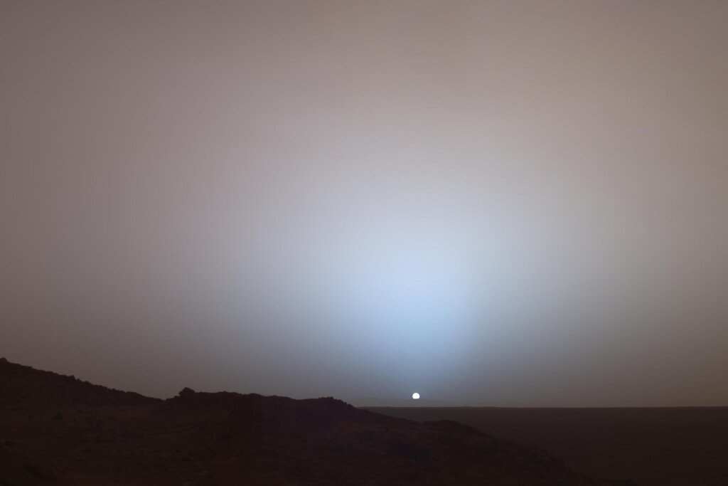 “精神号”漫游车于2005年在古瑟夫撞击坑边缘拍摄的日落。图片来源:NASA/JPL/Texas A&M/Cornell