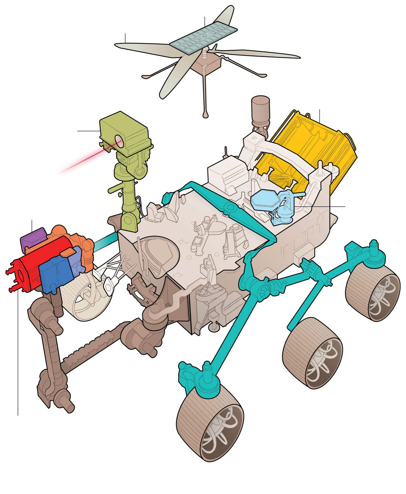 重达2200磅(约1吨)的“毅力号”漫游车和“独创号(Ingenuity)”火星直升机。图片作者:Eleanor Lutz;图片来源:NASA