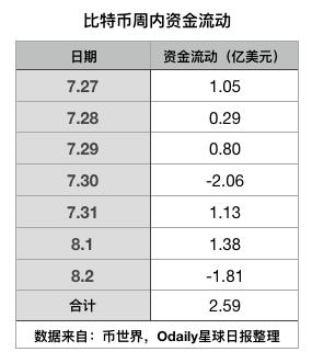 比特币周内净流入资金2.6亿美元;