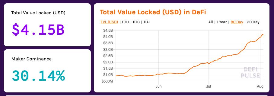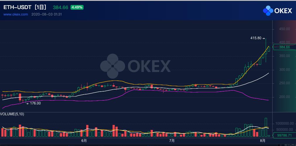 ETH周报 | ETH强势突破400美元,创两年新高;MakerDao稳定币DAI总量突破3亿枚(7.27-8.2)