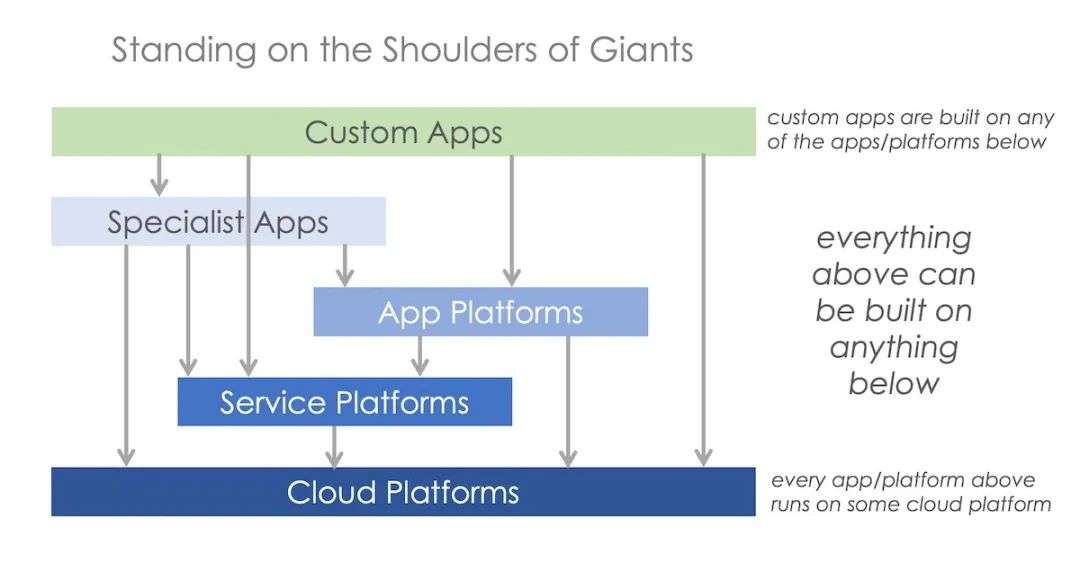 最底层的就是云计算平台(Cloud Platforms),国外的AWS、国内的阿里云;