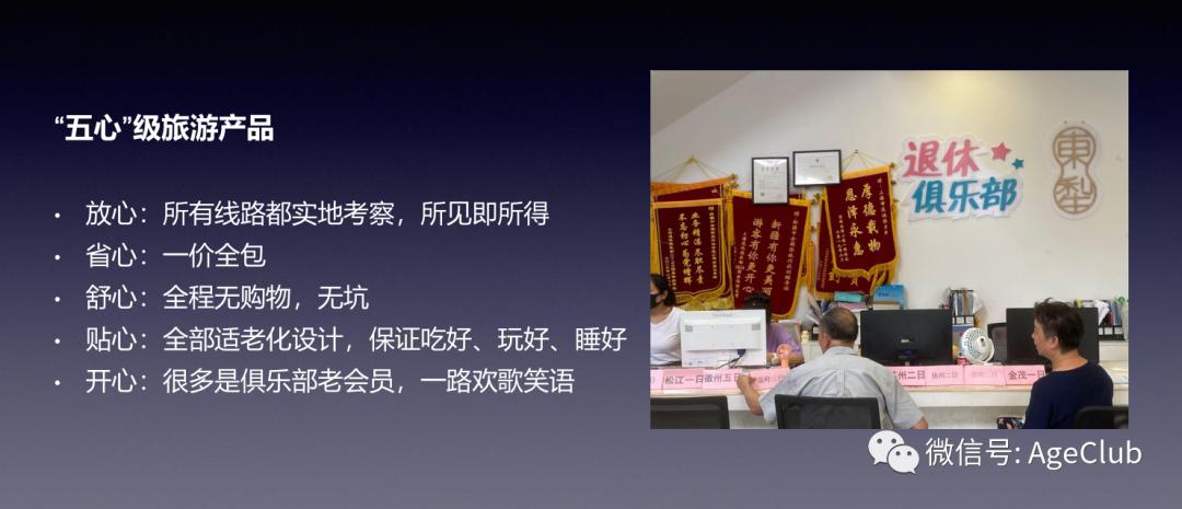 核心做的是跟团游,包括国内的短线、长线,出境、游轮,这些跟中老年人的属性有关,他们就喜欢这种出游方式。