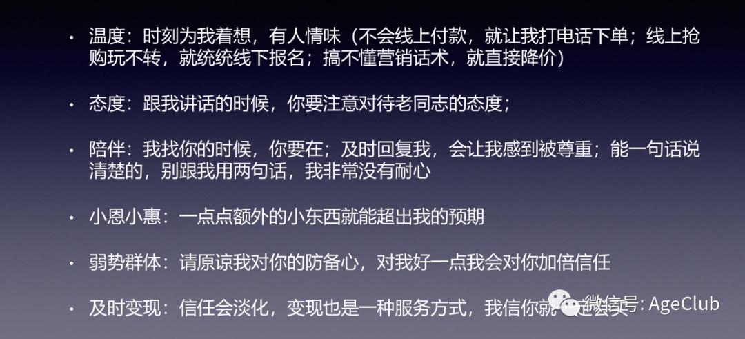 中老年人群超级在意服务,他们没有耐心,对服务的需求很旺盛、强烈。
